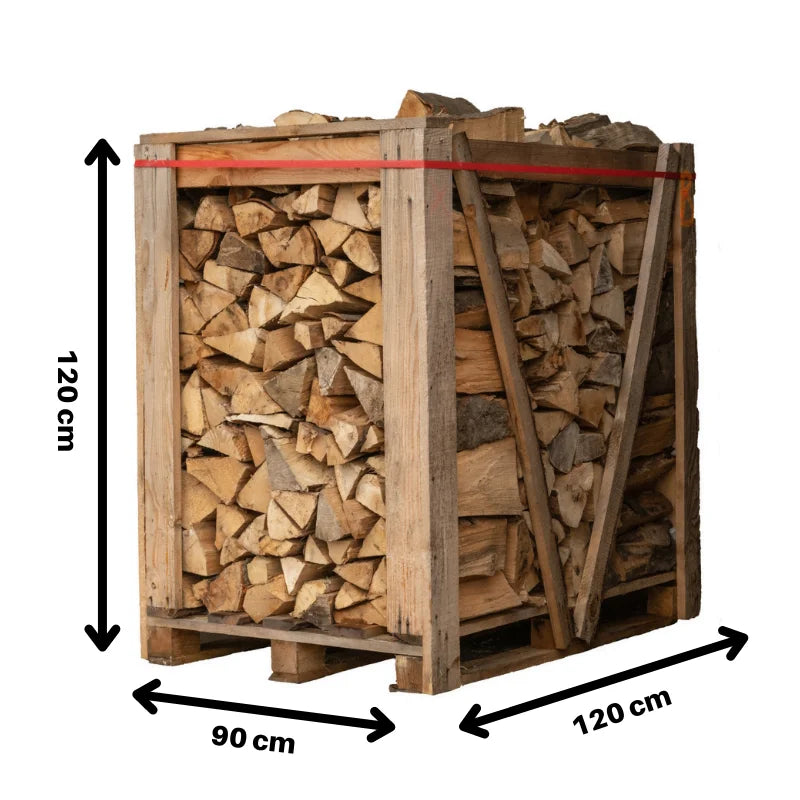 Bois de chauffage en hêtre, conditionné sur palette dite « perdue », prêt à être stocké dans un espace sec et ventilé. Les bûches mesurent environ 30 cm de long et sont issues d’un processus de séchage au four, pour garantir un taux d’humidité réduit.